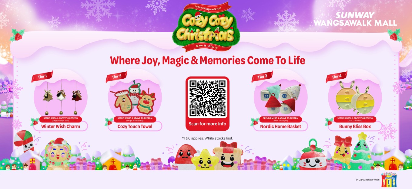 1. Cozy Cozy Christmas Redemptions are redeemable from 11:00 AM – 9:00 PM at the Concierge Counter, Level 1.